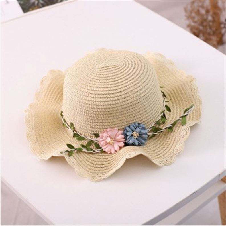 New Little Girls Straw Hat Wavy Lace Small Fresh Flower Sun Visor Hat Seaside Beach Cap Cute Style Summer