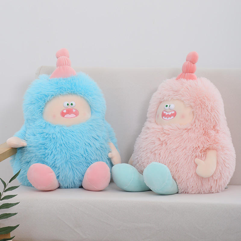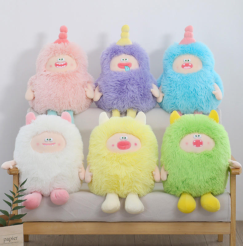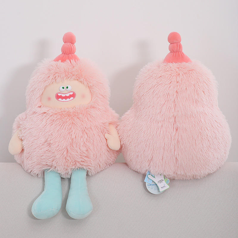 New Long Hairy Bear Cotton Fabric Colorful Cute Fluffy Stuffed Plush Throw Pillow Stress Relief Toy