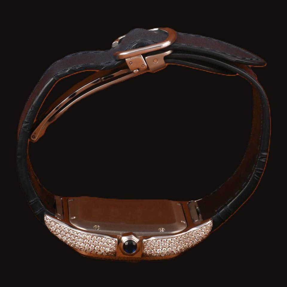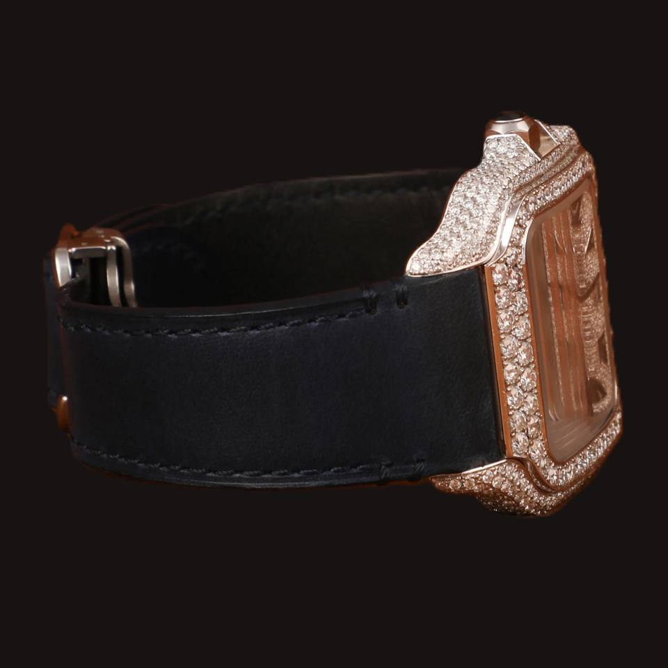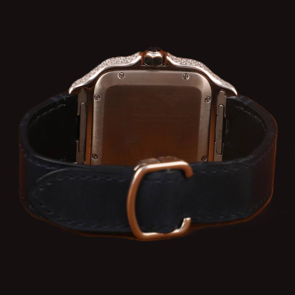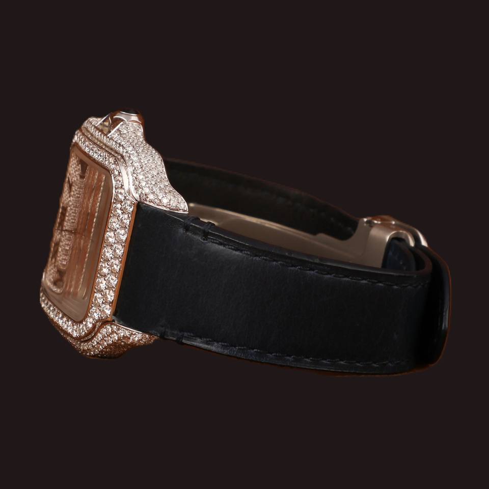 New Luxurious Black Designer Band Round Cut Moissanite Diamond Square Dial Glass Display Analog Wristwatch for Man's