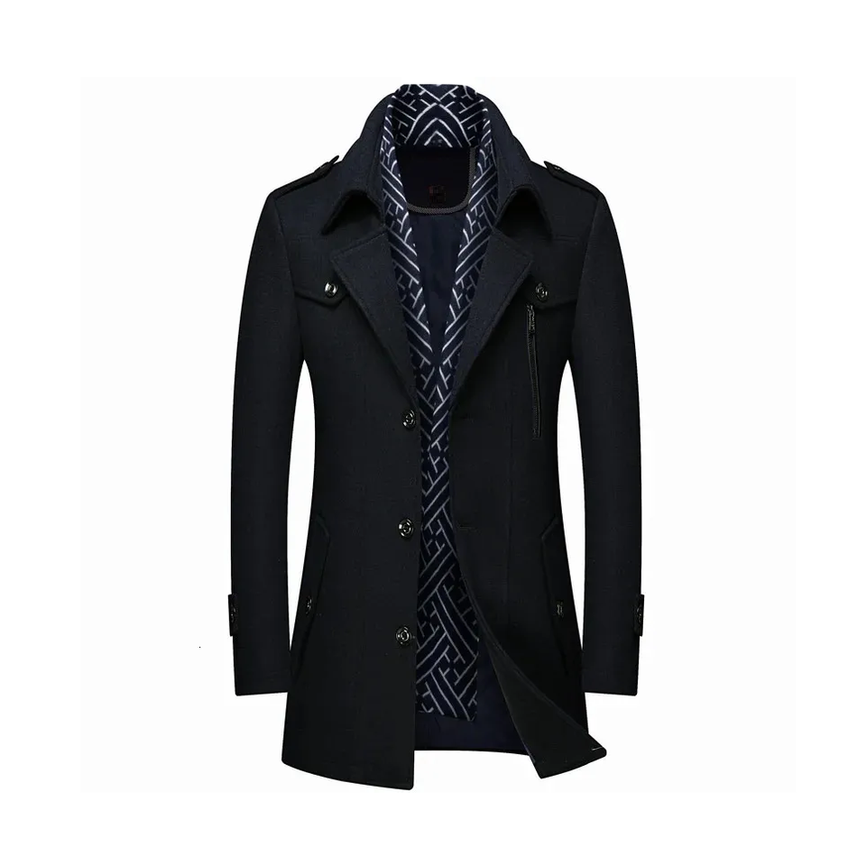 New Luxury 100%wool Fleece Embroidery Black Wool & Black Leather Sleeves Letterman Down Coat Men OEM Long Quick Dry Breathable
