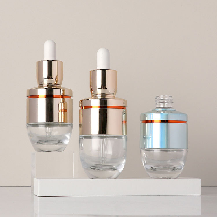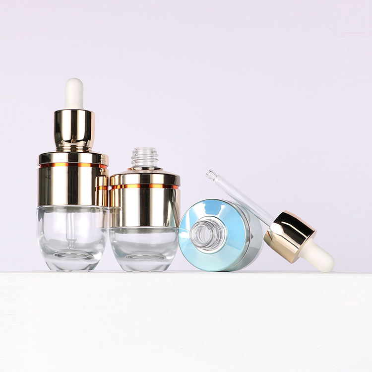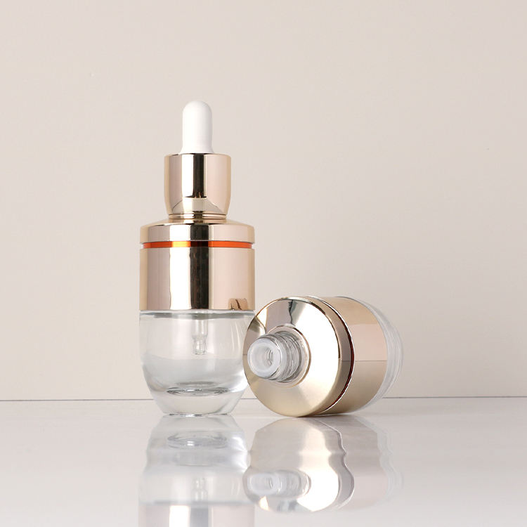 New Luxury 30ml 50ml Round Gold Essential Hair Oil Serum Boston Glass Essential Oil Dropper Bottle