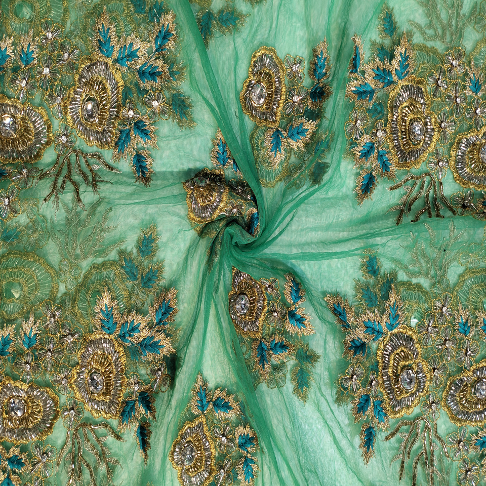 New Luxury African Lace Fabric Floral Design Cotton Metal Beads Stonework Crystals Thread Work Women's Party Dress Rhinestones