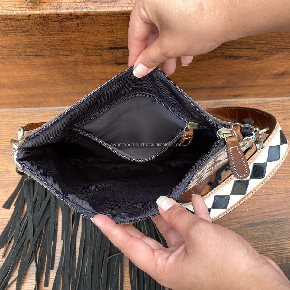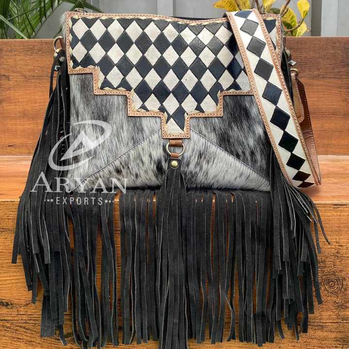 Product Name:White & Black Checkerboard Design Fringe Bag