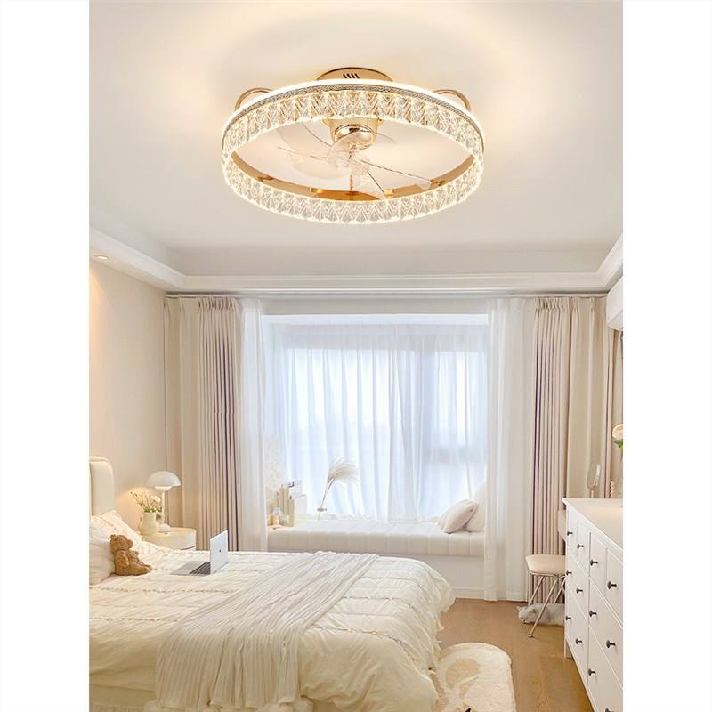 New Luxury Crystal Ceiling Hide Fan 3 Color Changeable Luminous Led Light Glass Lighting for Living Dining Room Indoor Lamp