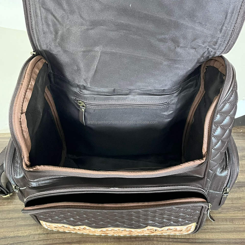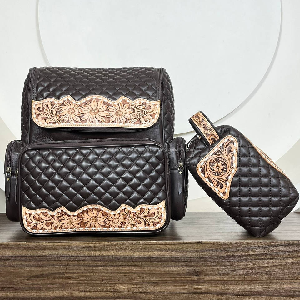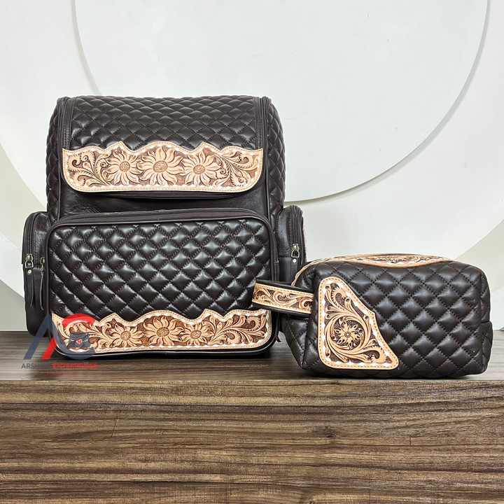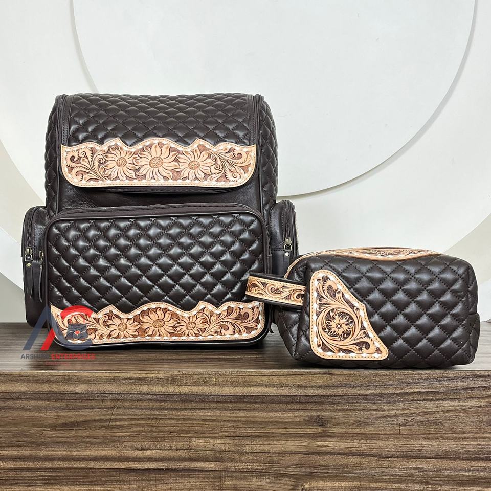 Product name:Hand Tooled Quilted Leather Backpack & Toiletry Bag