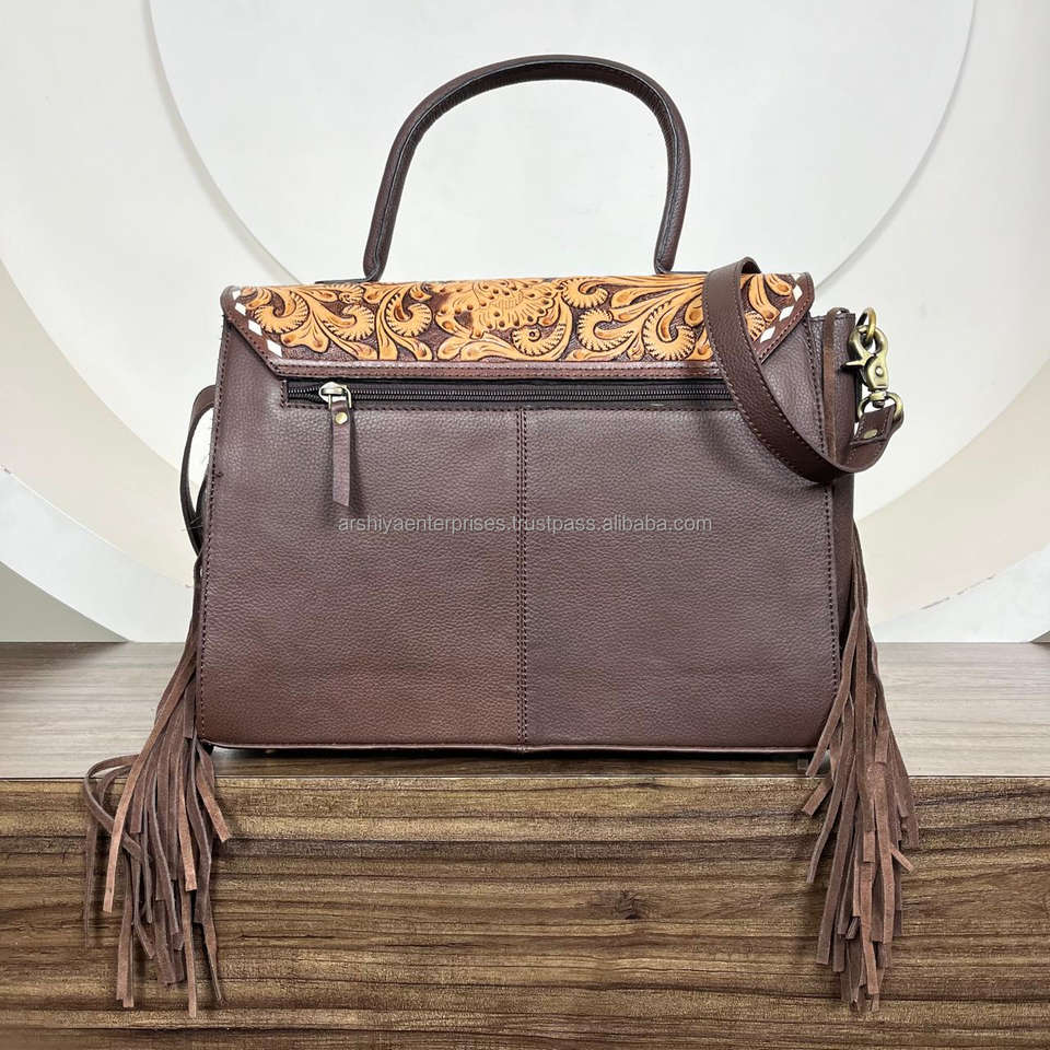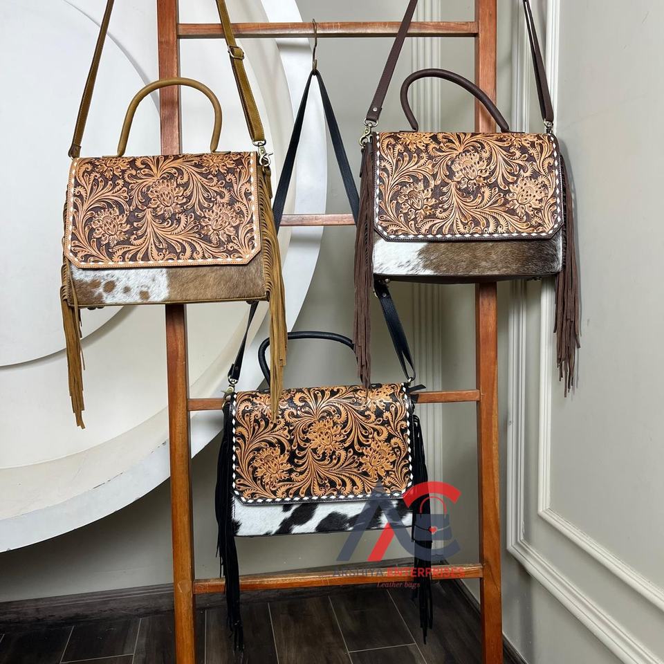 Product name:Genuine Cowhide Hand Tooled Leather Fringe Bag