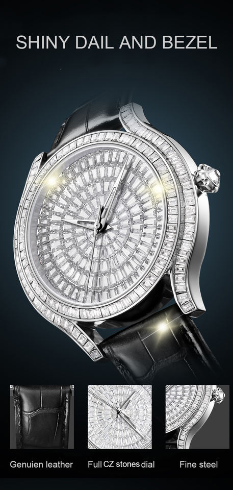New Luxury Hip Hop Men Watch Ice Out Full Rhinestones Dial Automatic Mechanical Diamond Watch