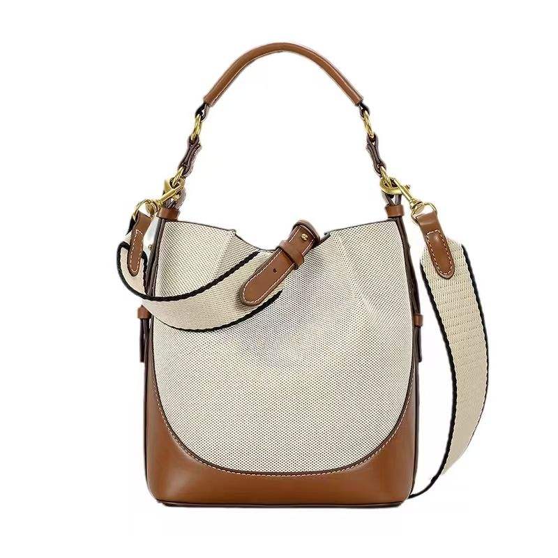 New Luxury Korean Brown PU Leather Crossbody Bucket Handbag for Women with Magnetic Closure Spring/Summer Portable
