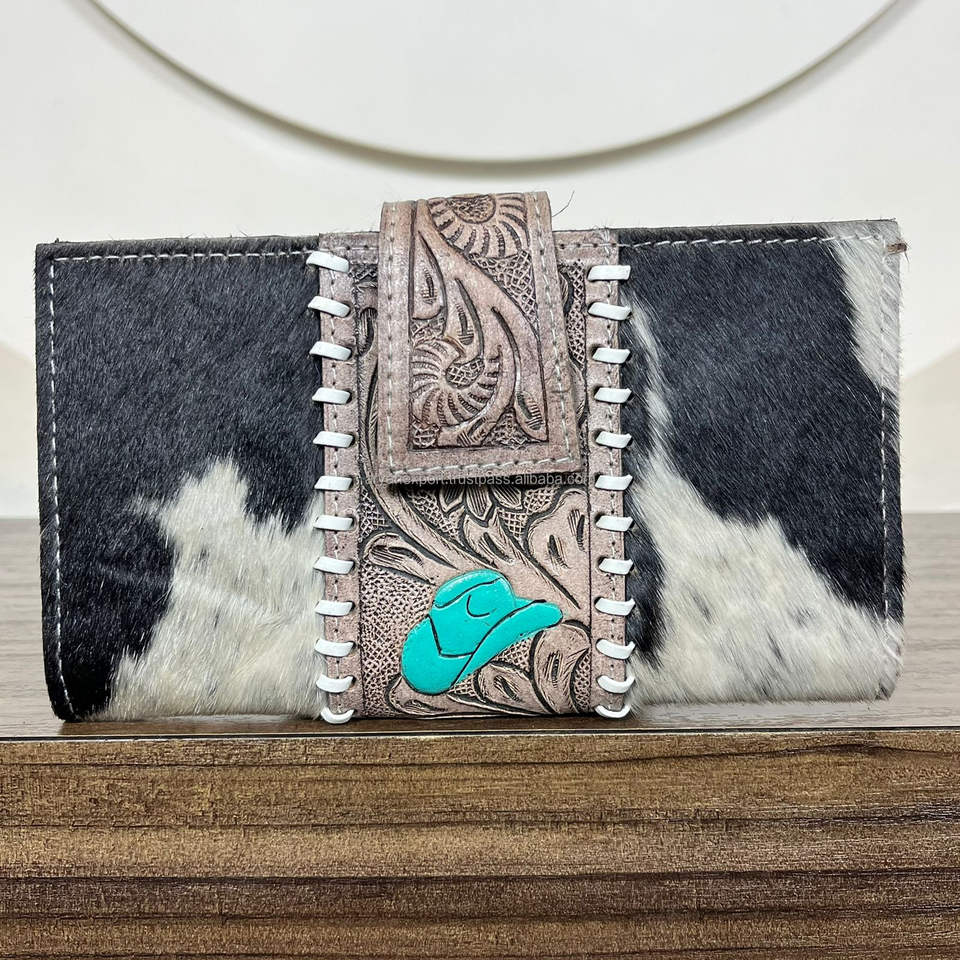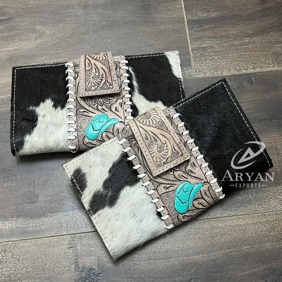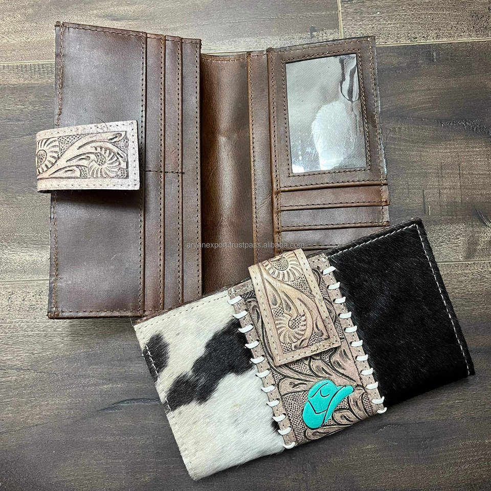 Hand Tooled Cowhide Leather Women Bifold Wallet