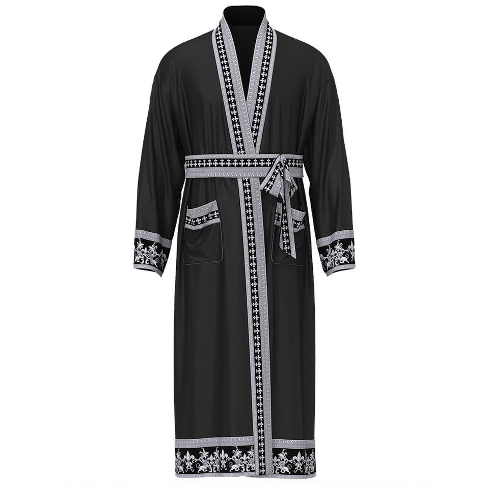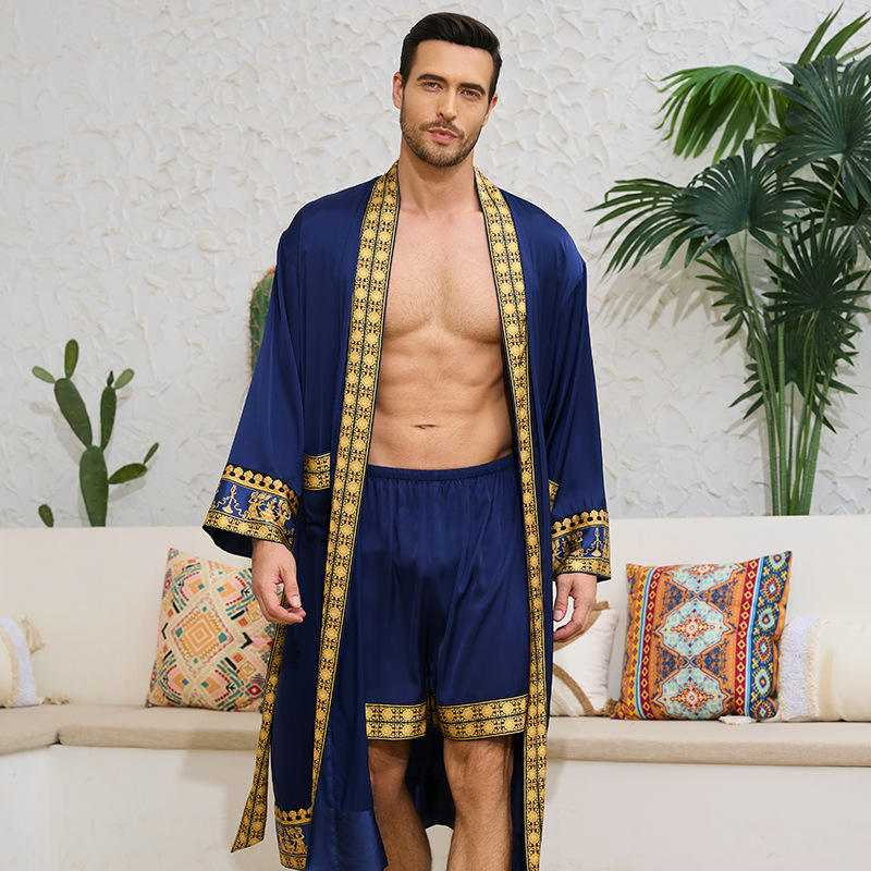 New Men's Luxury Plus Size European American Baroque Style Comfortable Ultra-Thin Satin 100% Polyester Robe Shorts Combo Set