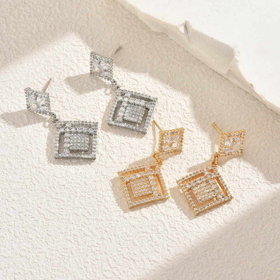 New Luxury Simple Long Geometric Stud Tassel Earrings for Women Trendy Zircon Stone Plating Best Fashionable Dangle Design Gift