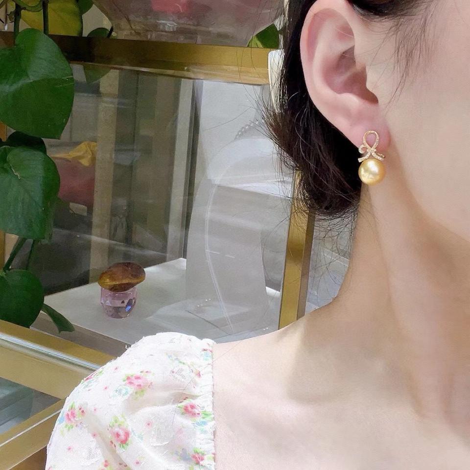 New Luxury Style 10-11mm Flawless Thick Gold Texture Petal Green Treasure Natural Gold Bead Earrings 100% Authentic Pearl Light