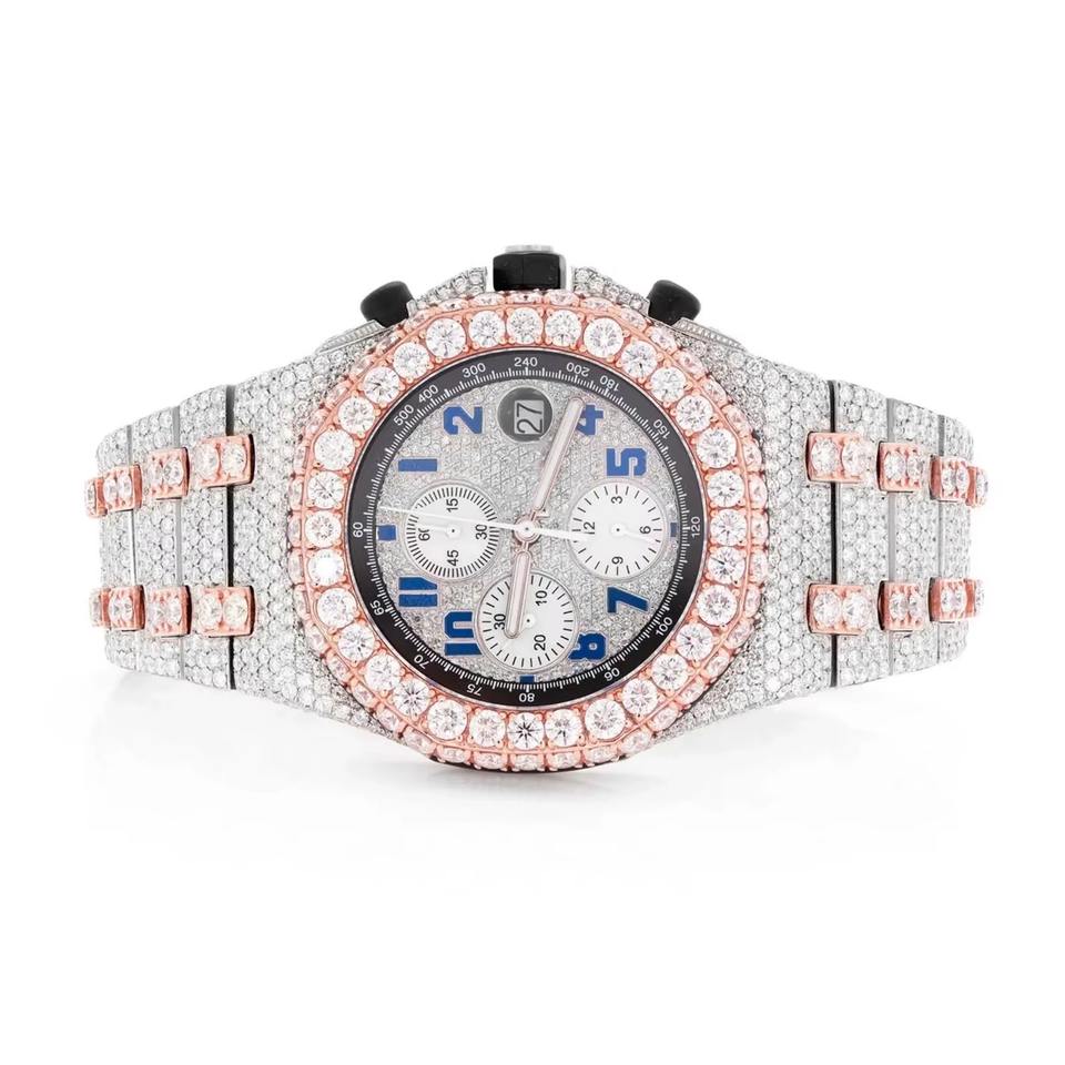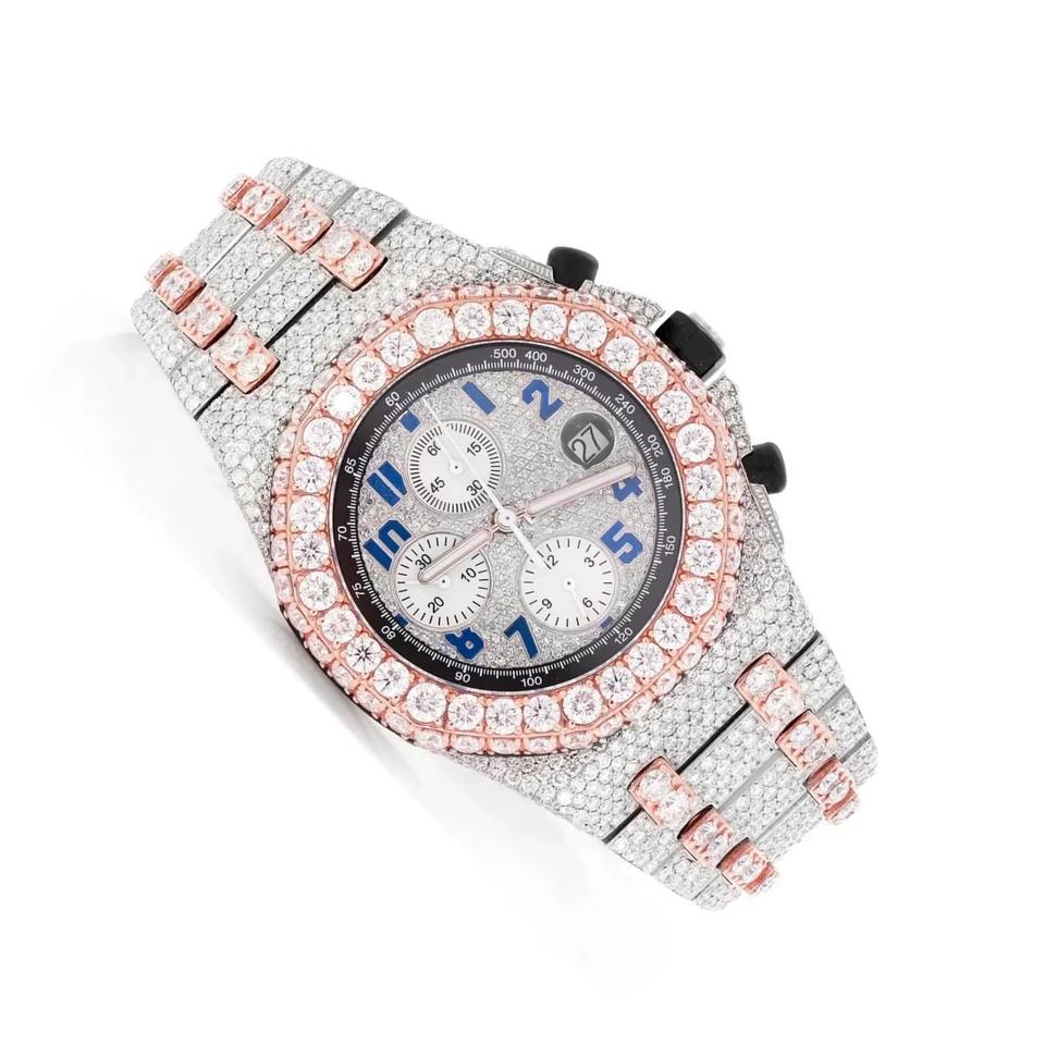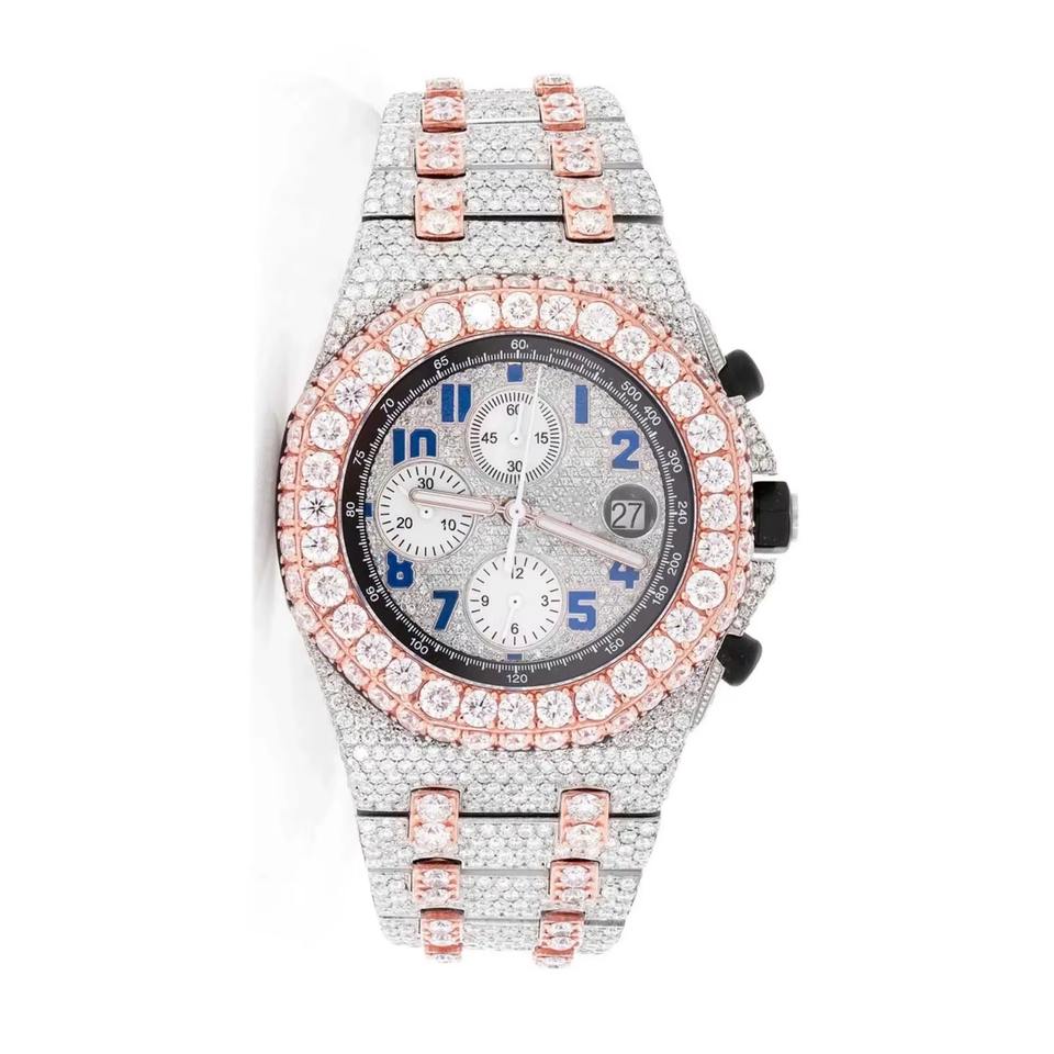 New Luxury Trendy Bling Watch Lab Diamond VVS Moissanite Luxury Fancy Handmade Watches for Men's Watch Stock on Hand
