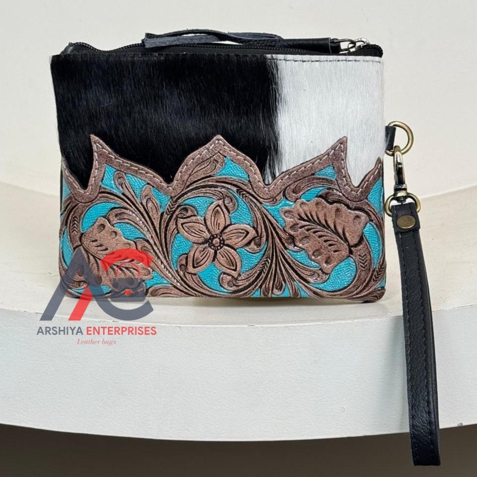 Product Name:Hand Tooled Leather Wristlet Tassel Pouch