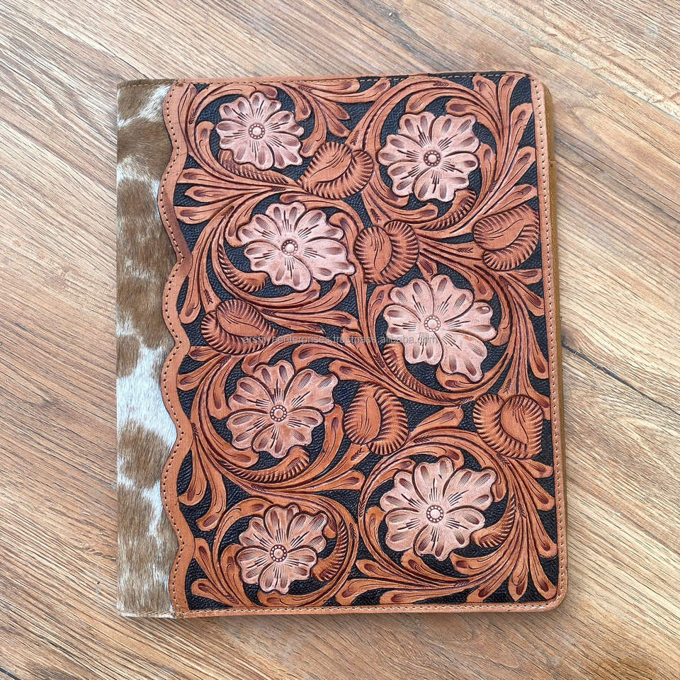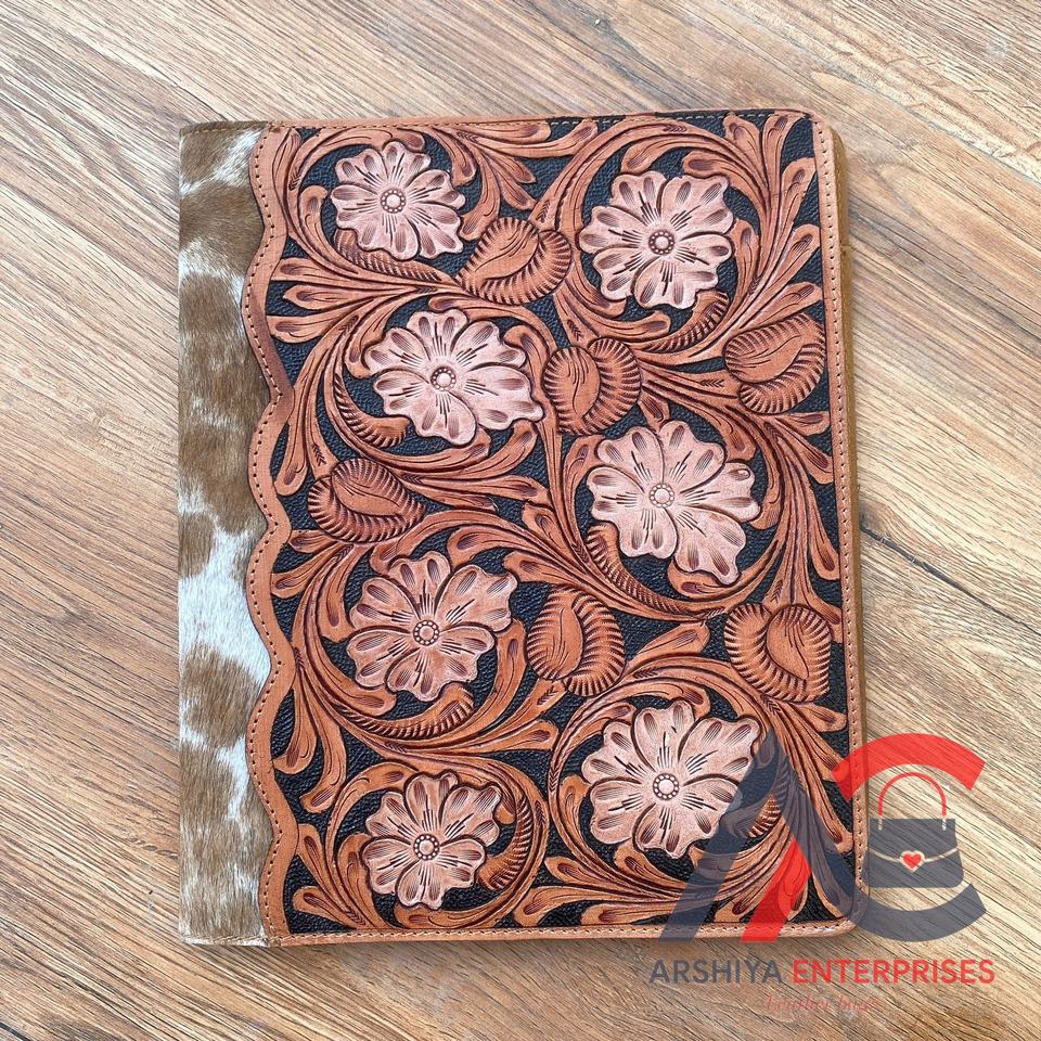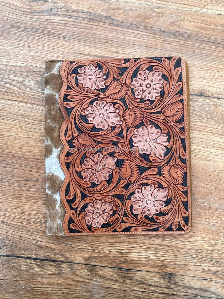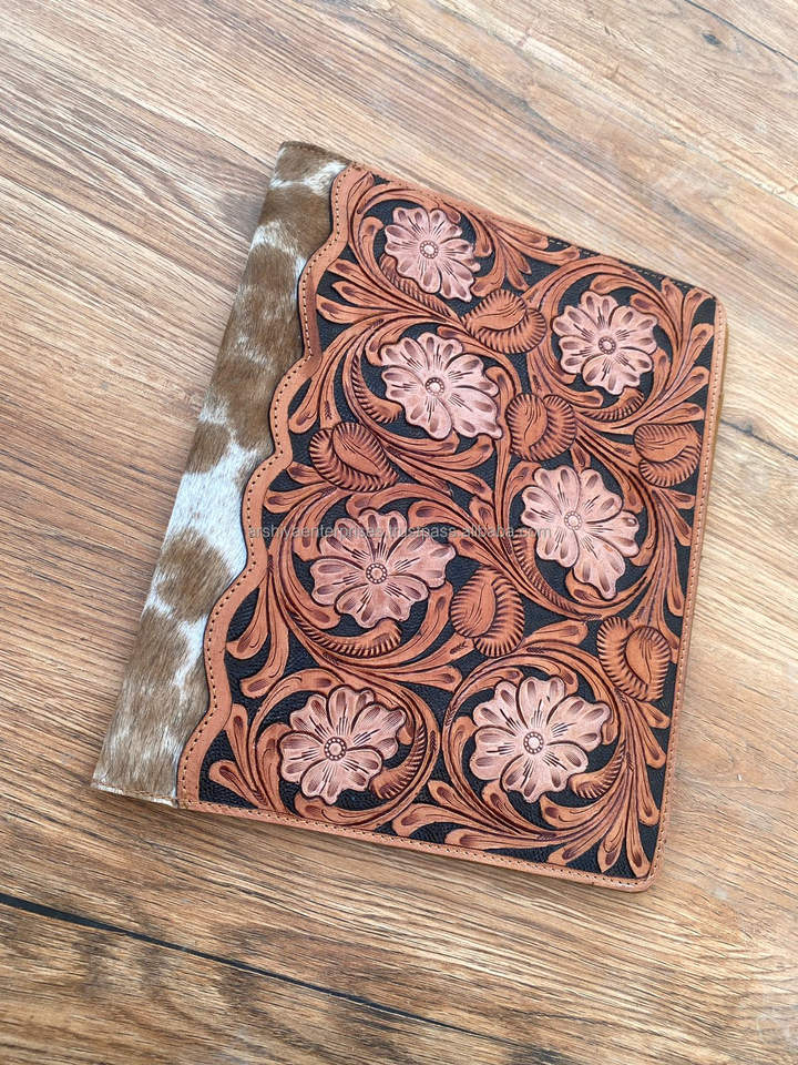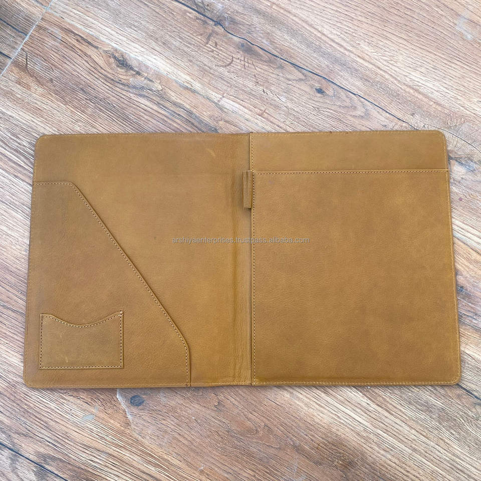New Manufacture Custom Hand Tooled Leather A4 Presentation Paper Business File Folder with Slot Cowhide Binder Portfolio Folders