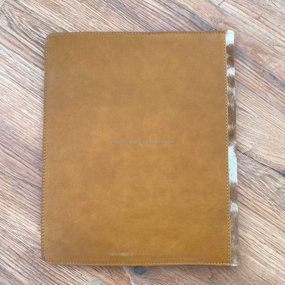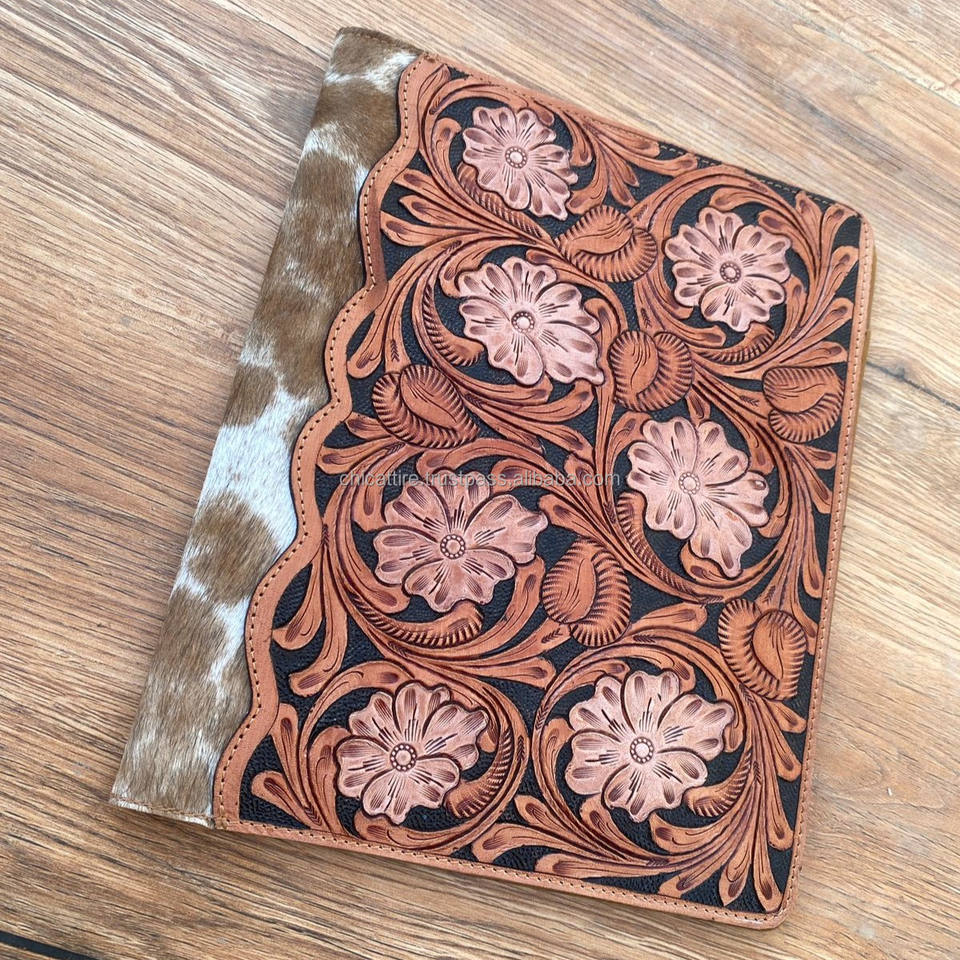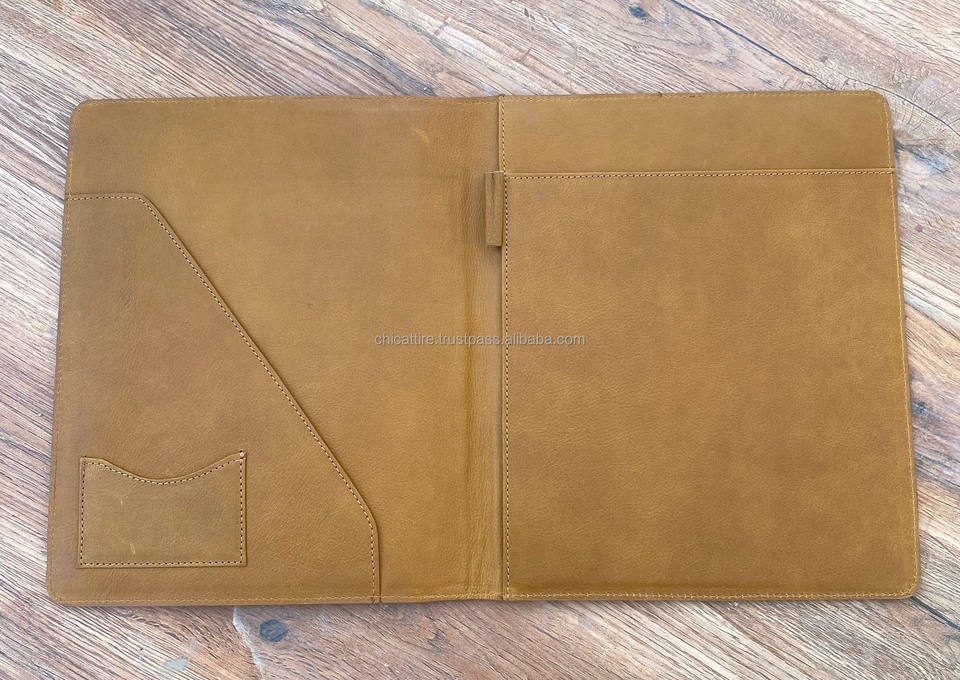 New Manufacture Custom Hand Tooled Leather A4 Presentation Paper Business File Folder with Slot Cowhide Binder Portfolio Folders