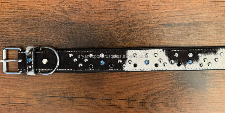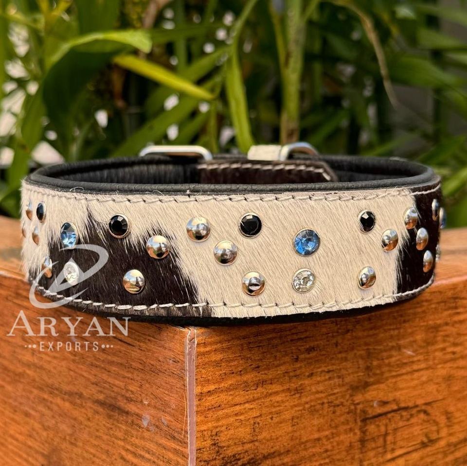 New Manufacturer Cowhide Crystal Diamond Studded Dog Collar Heavy Duty Genuine Leather Pet Collars for Small Medium Large Dogs