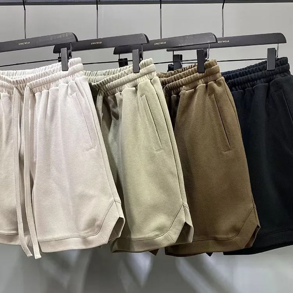 New Manufacturer Custom 380g 100% Cotton Sweat Shorts Men Solid Color High Street Style Slit Elastic Waist Digital Printing Mid