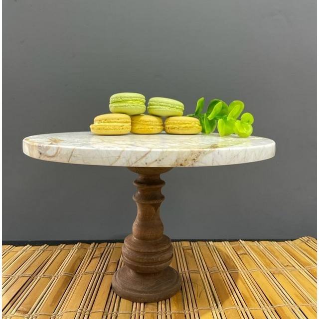 New Marble Wood Cake Decorative Round Pizza Cake Stand Pedestal Tray Marble White Natural Stone Cake Stand Manufacturer