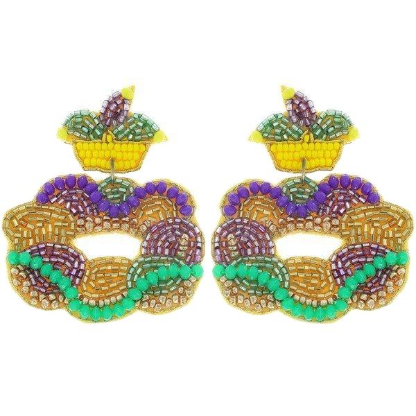 New Mardi Gras Looking Letter Seed Beaded Mask Drop Earrings Cute Hand Embroidery Trendy Design Made in India