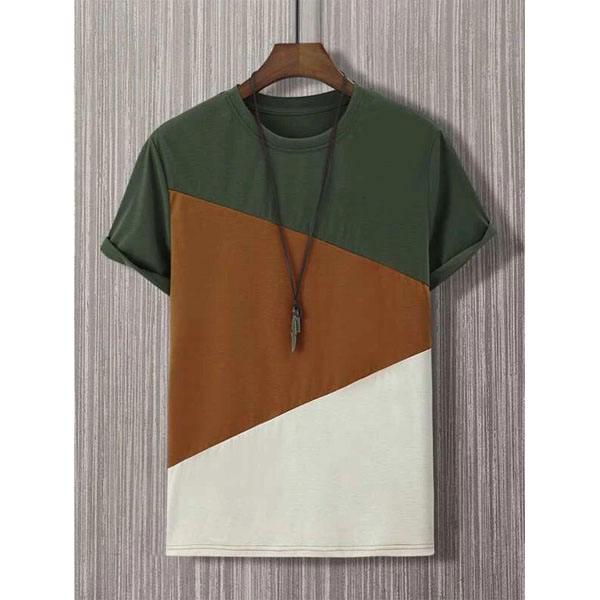New Men Color Blocked T-shirt Summer Casual Streetwear Style Fashion Supporting T-shirt for Men