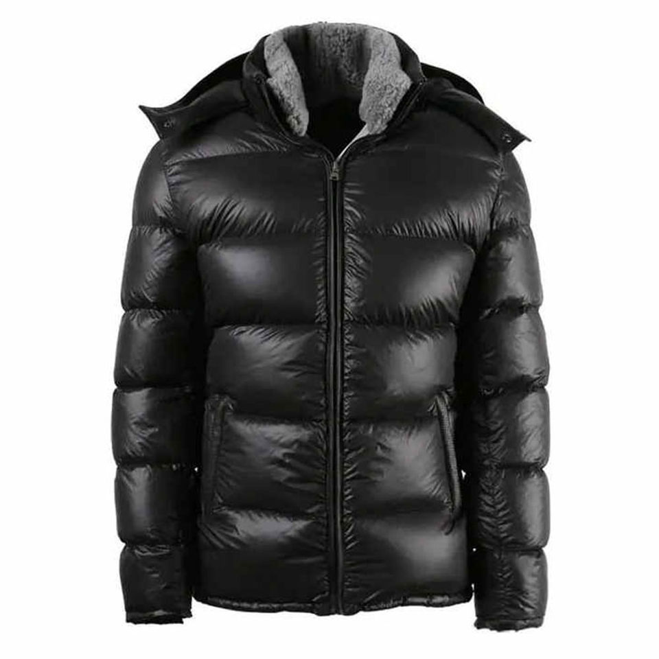 New Men Shiny Black Puffer Jacket Fur Hooded Winter Bubble Coat Warm Padded Down Parka Custom Waterproof Quilted Jacket