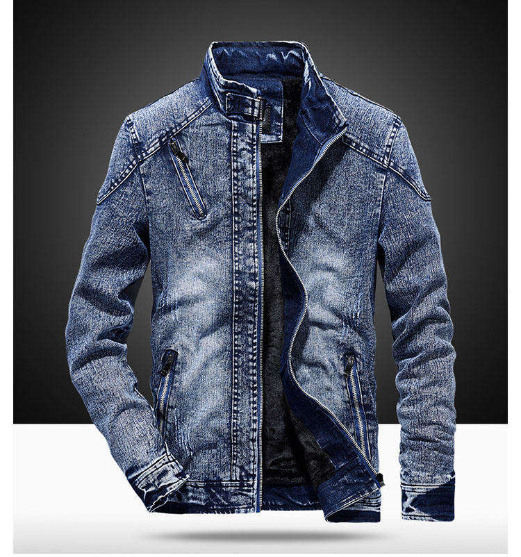 New Men's Autumn Winter Slim Fit 100% Cotton Vintage Denim Jacket with Stand Collar and Front Logo