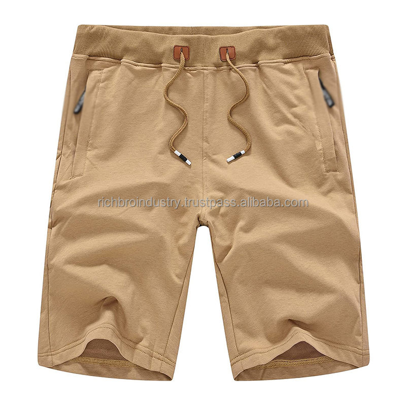 New Men's Casual Sports Shorts Eco-Friendly 100% Polyester Solid High Zipper Pockets Drawstring Summer Workout Beach Male