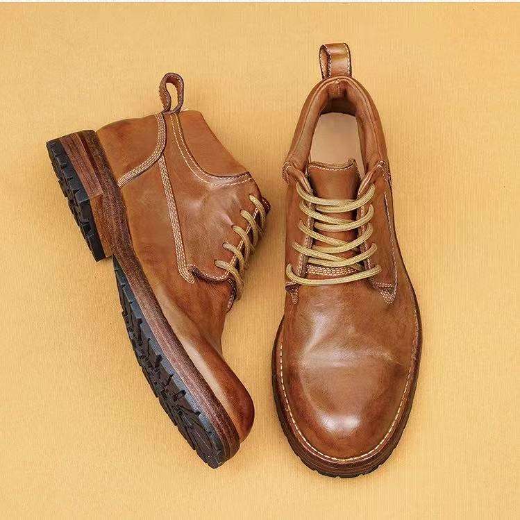 New Men's Genuine Leather Formal Winter Ankle Boots Washable Goodyear Welted Retro Fashion Amekaki Workwear Lace up Shoes