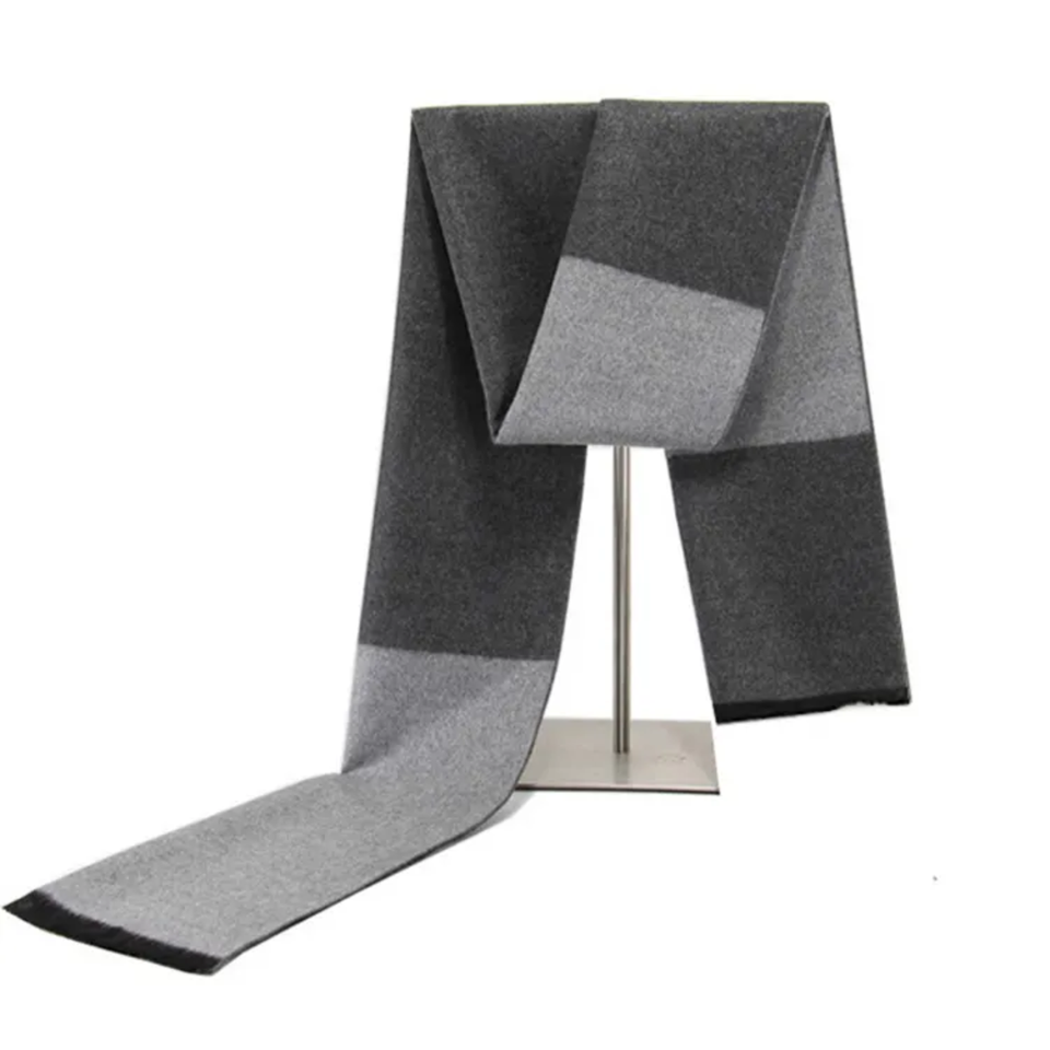 New Men's Winter Warm Cashmere Scarf Classic Plaid Checked Long Tassel Knit Scarf Black Gray Red, Navy Blue