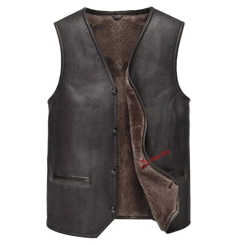 New Mens Brown Real Genuine Sheepskin Leather Shearling Vest New Style Fur Vest For Men and Women - Unisex