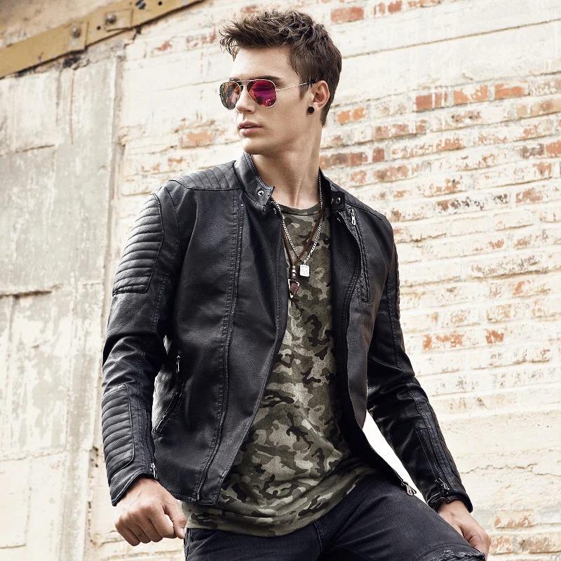 Autumn Winter Men's High Street Style Leather Jacket Thick Velvet Faux Biker Motorcycle Coat with Warmth Canvas Outerwear
