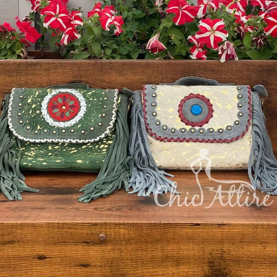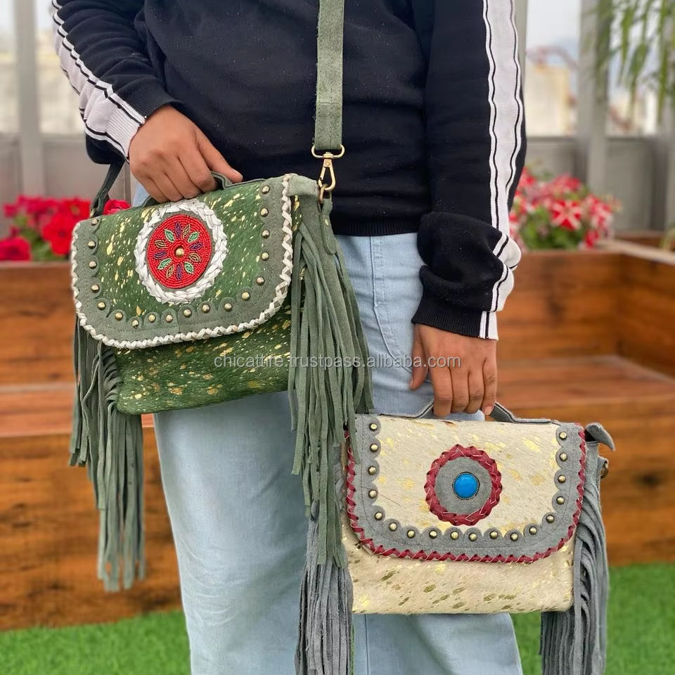 Product name:Hair On Metallic Suede Leather Fringe Purse