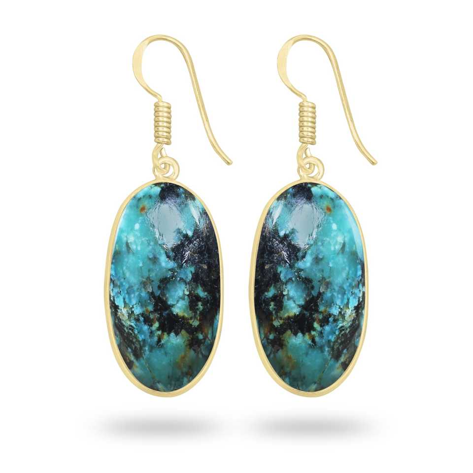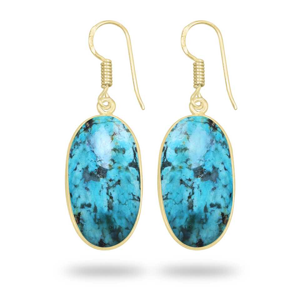 New Minimalism Natural Chrysocolla 18K Gold Plated Dangling Women Drop Earrings Ethnic Bold Holiday Jewelry Fashionable Jewelry