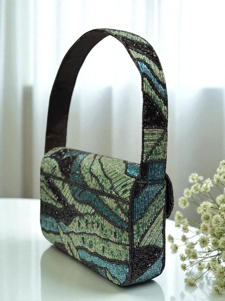 New Mirror Work Beaded Evening Clutch Pearls Embroidery Rhinestone Floral Designer Party Wedding Festive Shoulder Bag for Women
