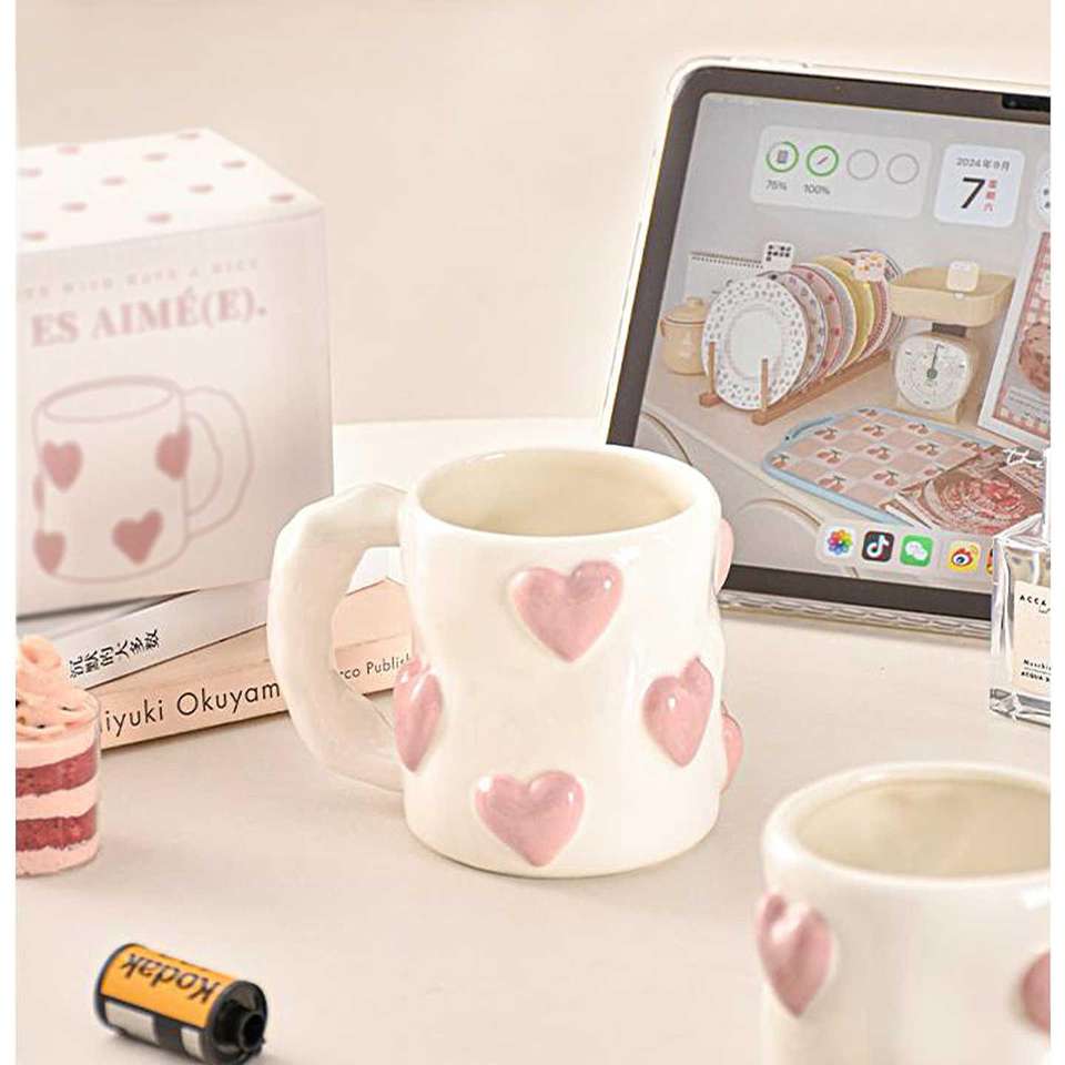 New Model Customized Heart Eco-friendly Stoneware Ceramic Mug Dishwasher & Microwave Safe Reusable Food Safe