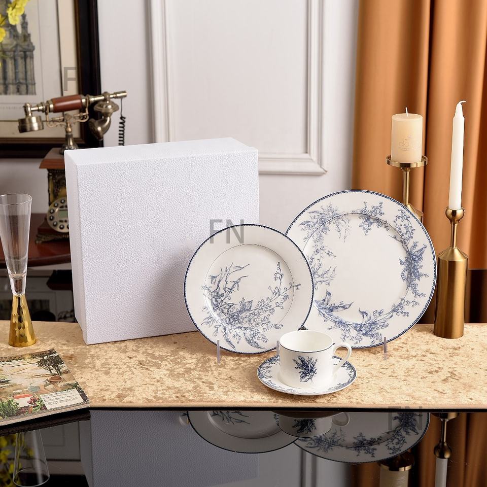New Model Nordic Minimalist Lily of the Valley Patterned 4pcs Porcelain Dinner Plate Set