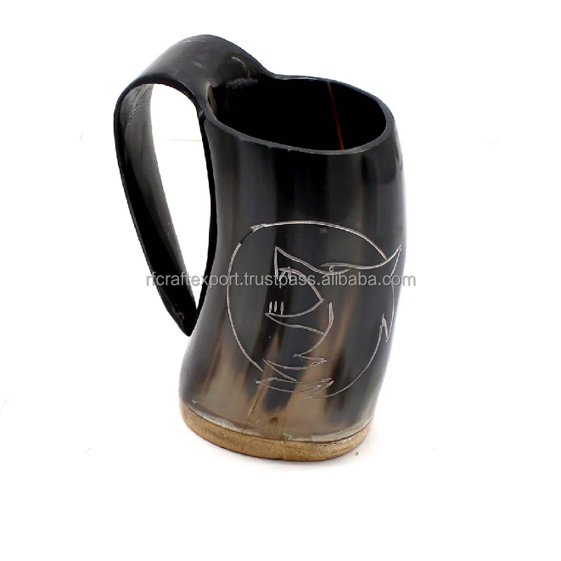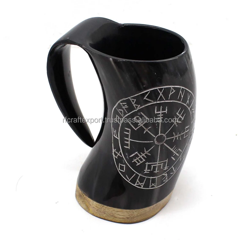 New Modern 100% Authentic Polished Buffalo Horn Drinking Mug / Viking Drinking Beer Horn Cup Tankard From India by RF Crafts
