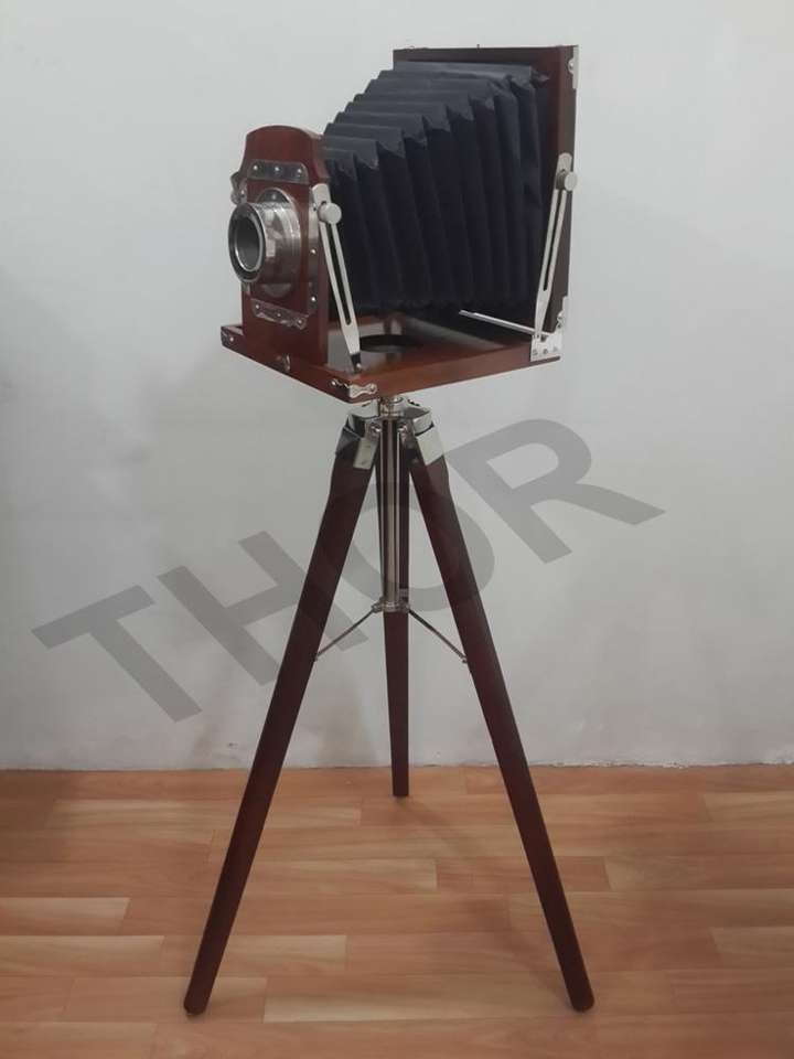 New Modern Design Film Camera Wooden Tripod Collectible Studio Gift Item Brown Color (10 Inches) THORINSTRUMENTS TIC7CAM