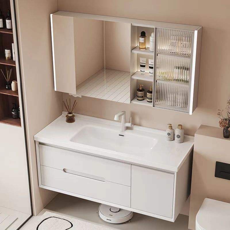 New Modern Style Floor Standing Solid Wood Single Sink Bathroom Cabinet Vanity with Smart Mirror Washbasin Wholesale
