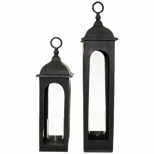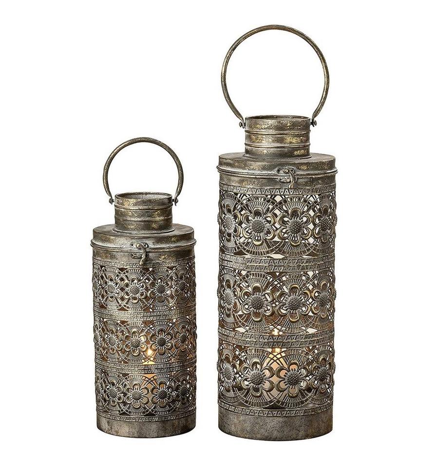 New Moroccan Temple Lanterns Luxury Floor Hurricanes Set of 2 Iron Antique Patina Decorative Candle Lanterns for Home Feastivals