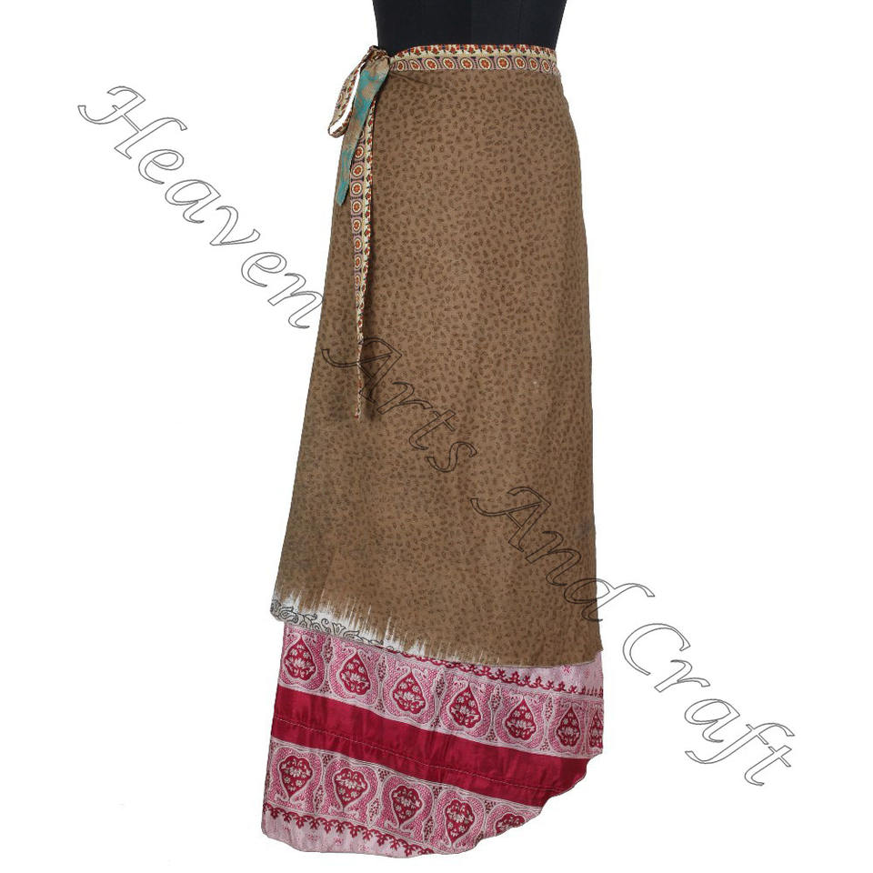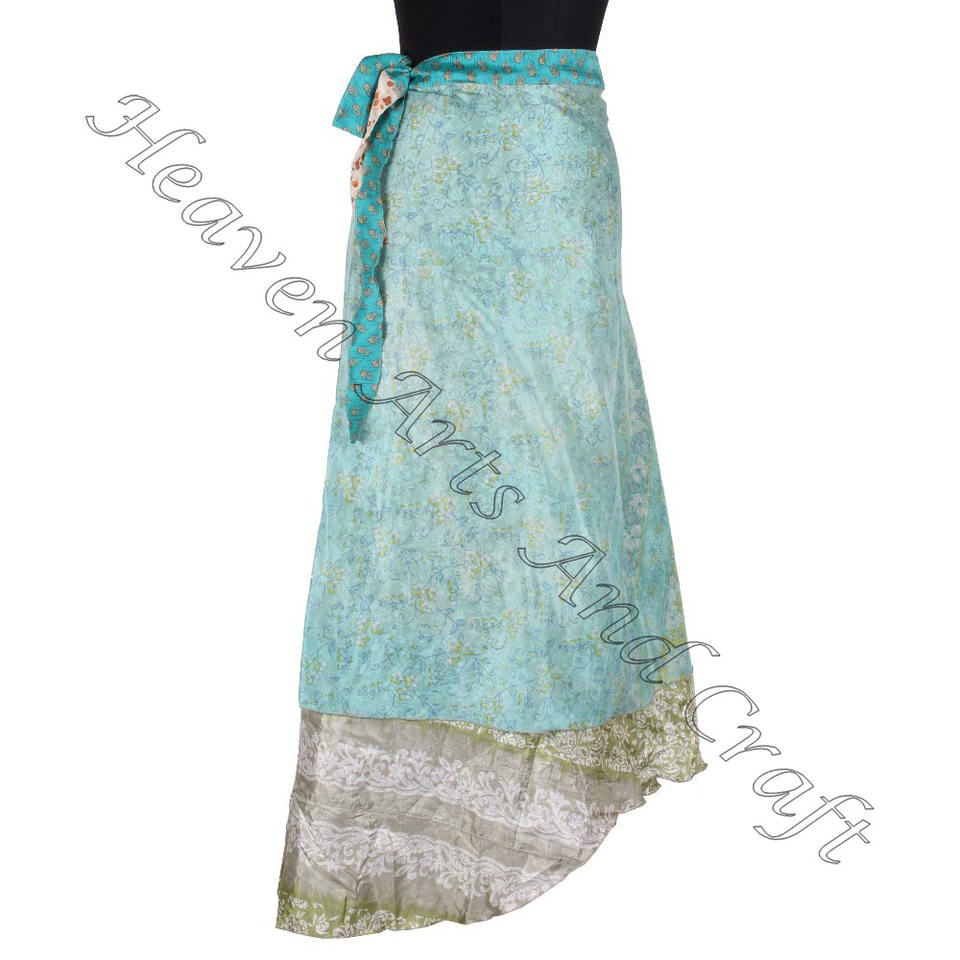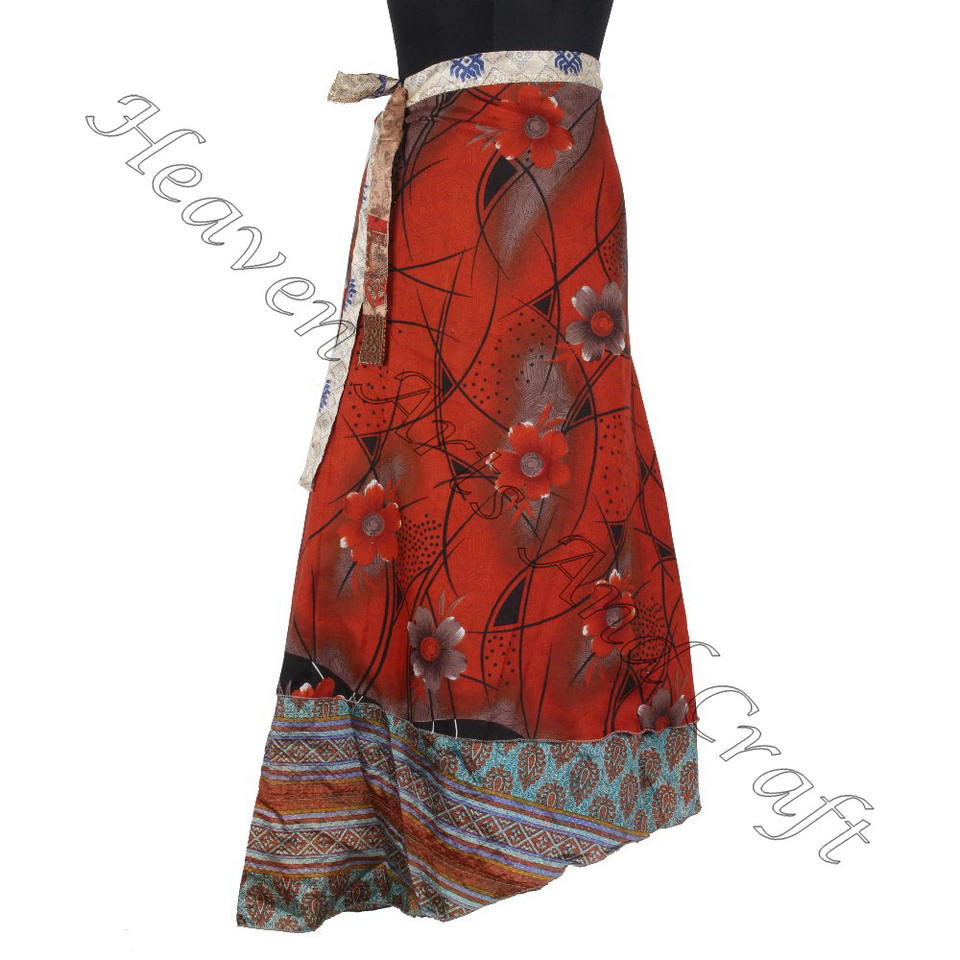 Multicolor Indian Silk Sari Wrap Skirt Long Printed Wrap from India Recycled Silk Plus Size Feature