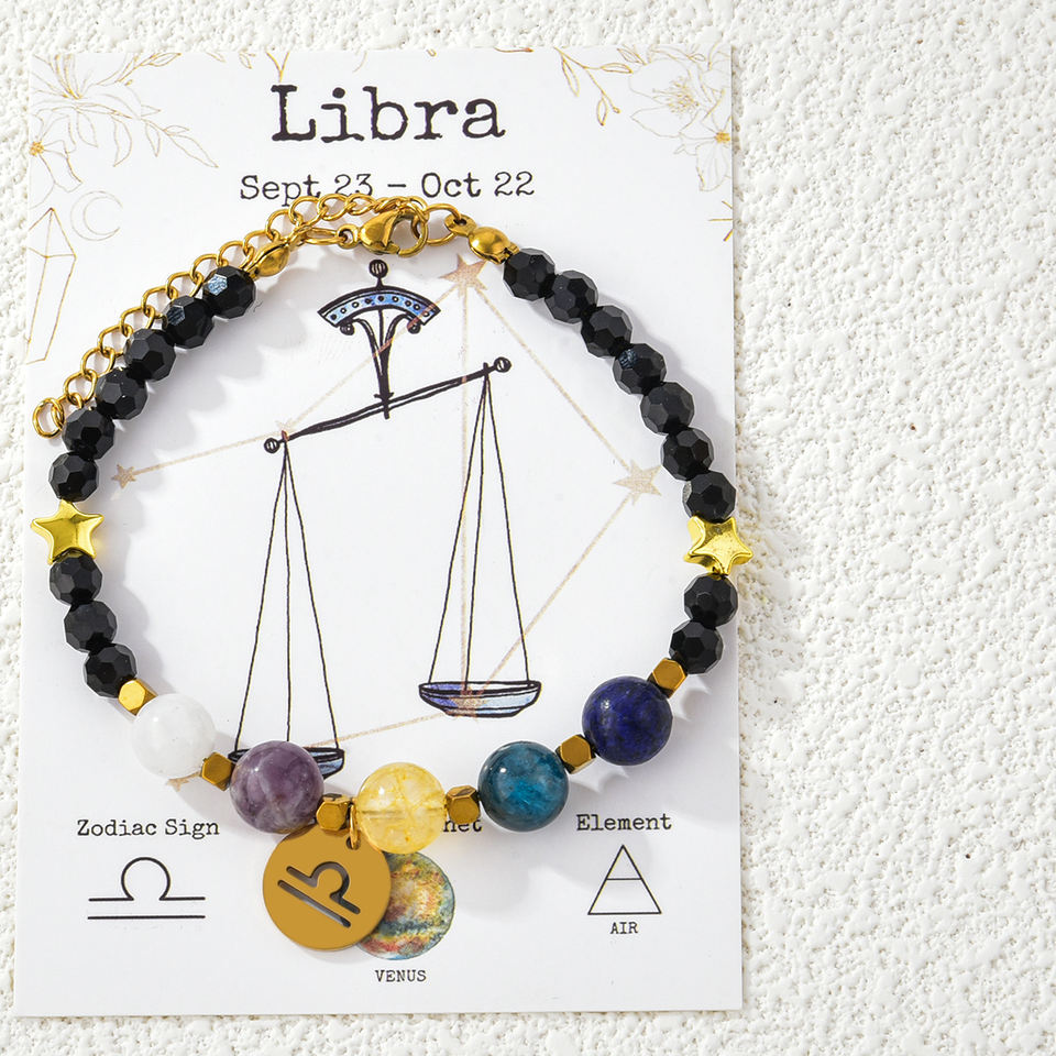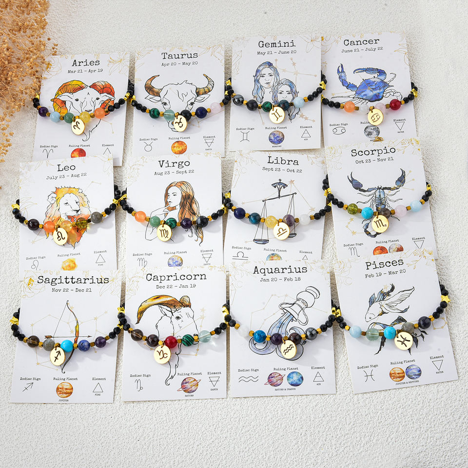 Handmade Braided Rope Stone 12 Zodiac Card Bracelets