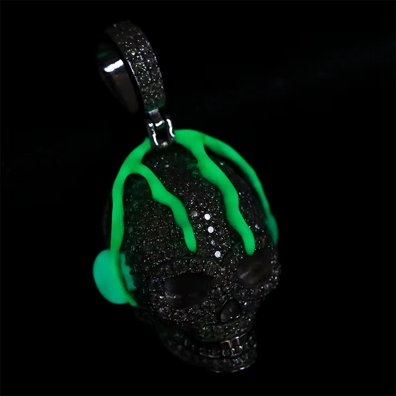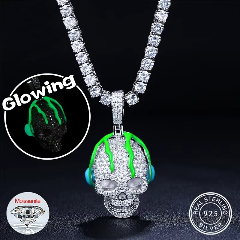 New Original Design Glowing Moissanite Diamond Women & Men Cool Domineering Skeleton Pendant in 925 Sterling Silver