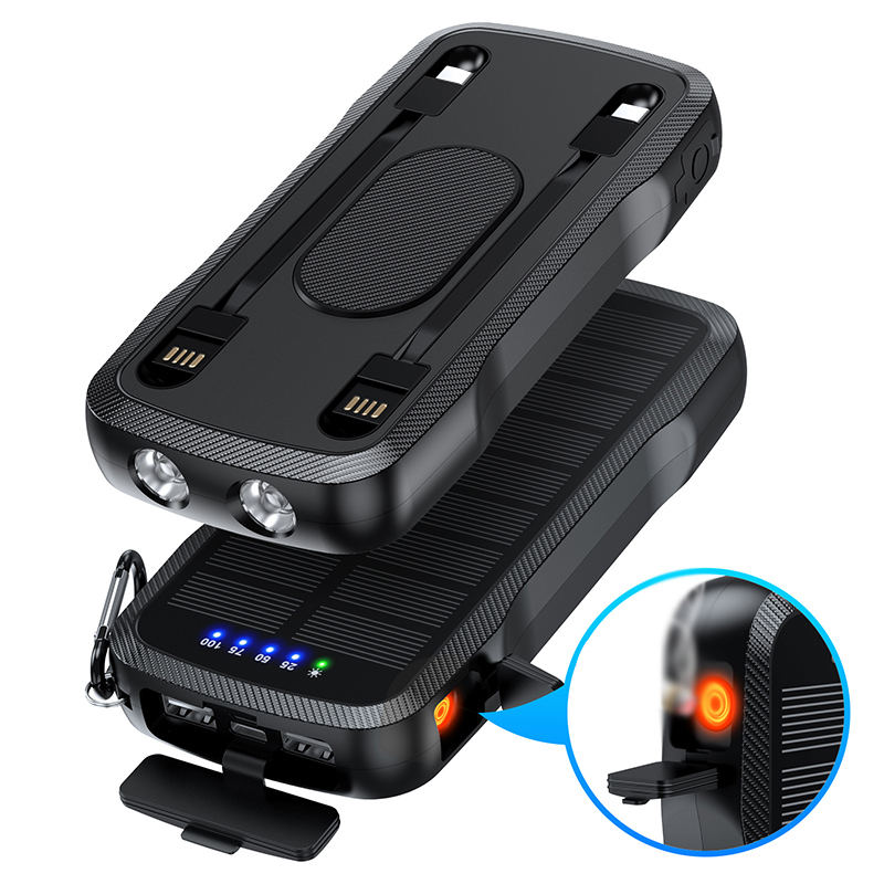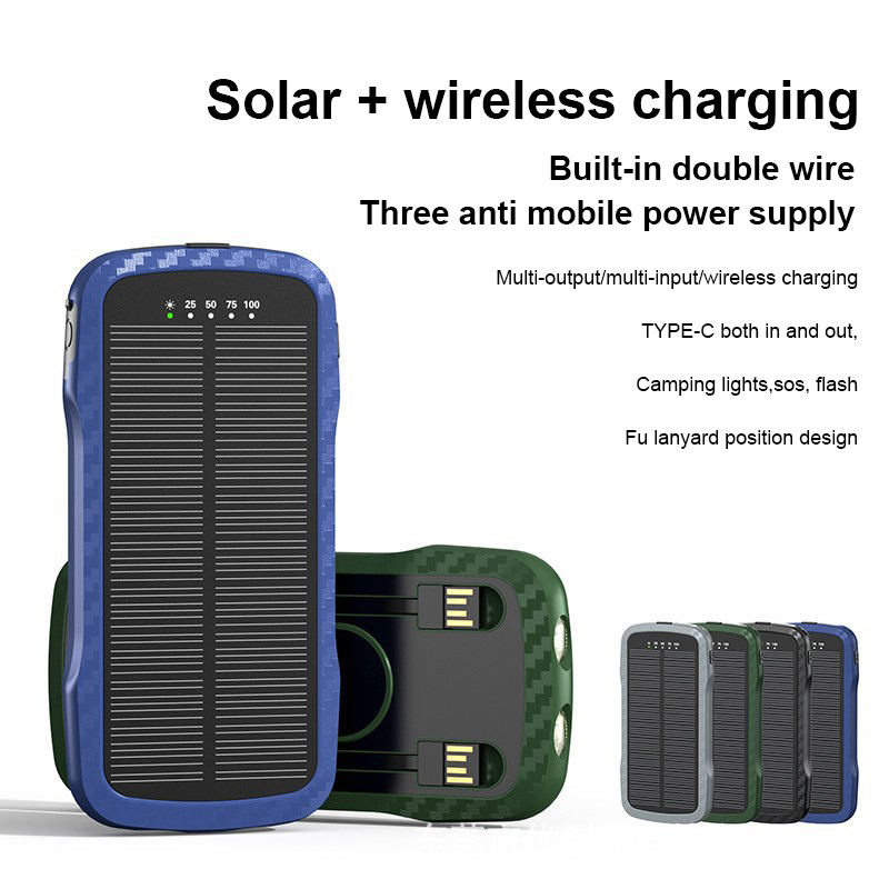 New Outdoor Portable Solar Wireless Power Bank 10000mAh Built-in Cable Charger with Flashlight for Mobile Phone