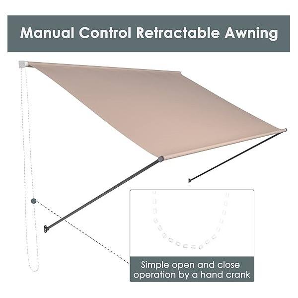 New Outdoor Retractable Manual Clamp Awning Sun Shade Protection for Patio Balcony Aluminum & Iron Frame Polyester Sail Material