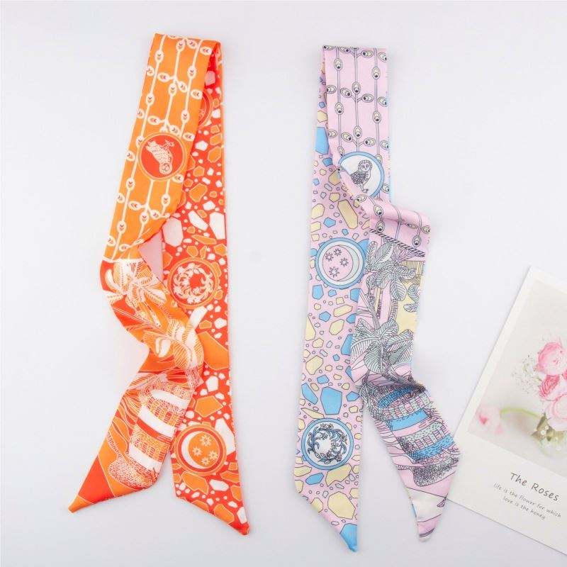 New Owl Plant Small Silk Scarf Arm Bag Handle Long Thin Narrow Hair Band Ribbon Gift Box Hand Gift Band