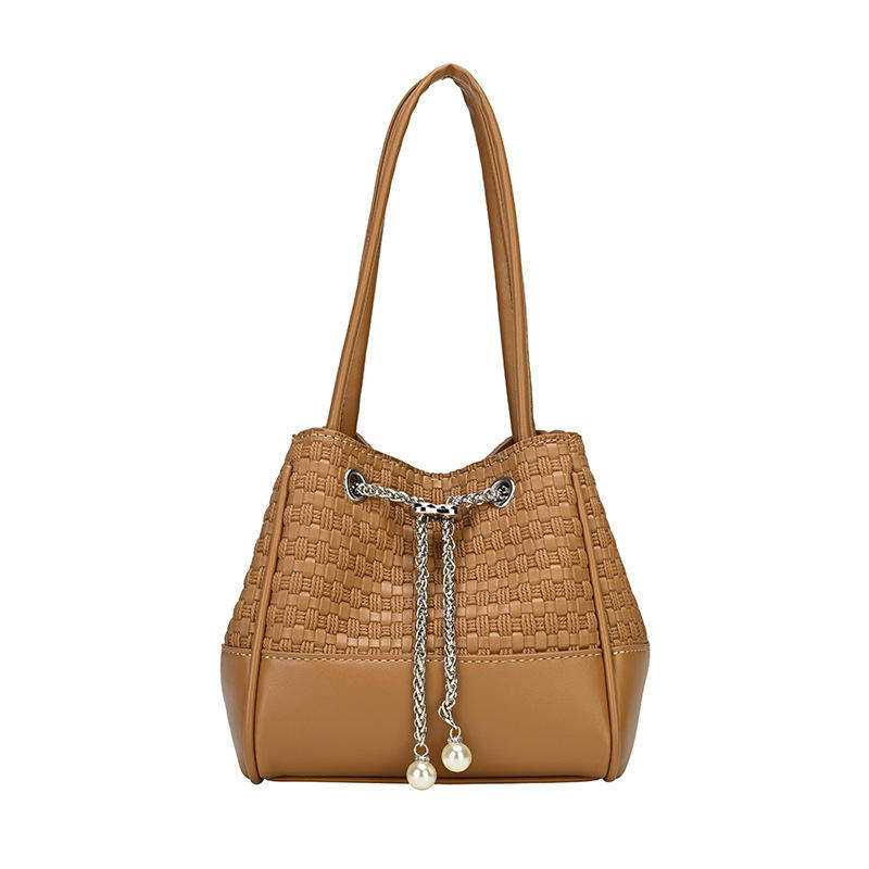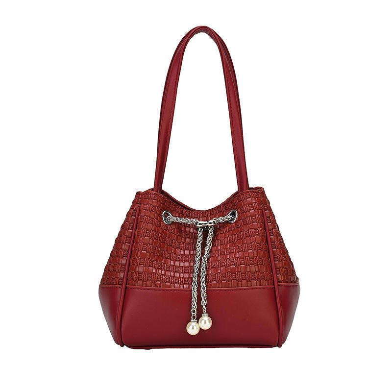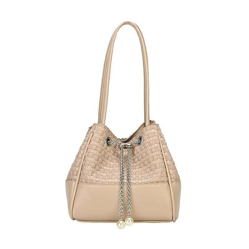 New PU Fashion Women's Handbag Elegant Pearl Open Durable Portable Bucket Bag