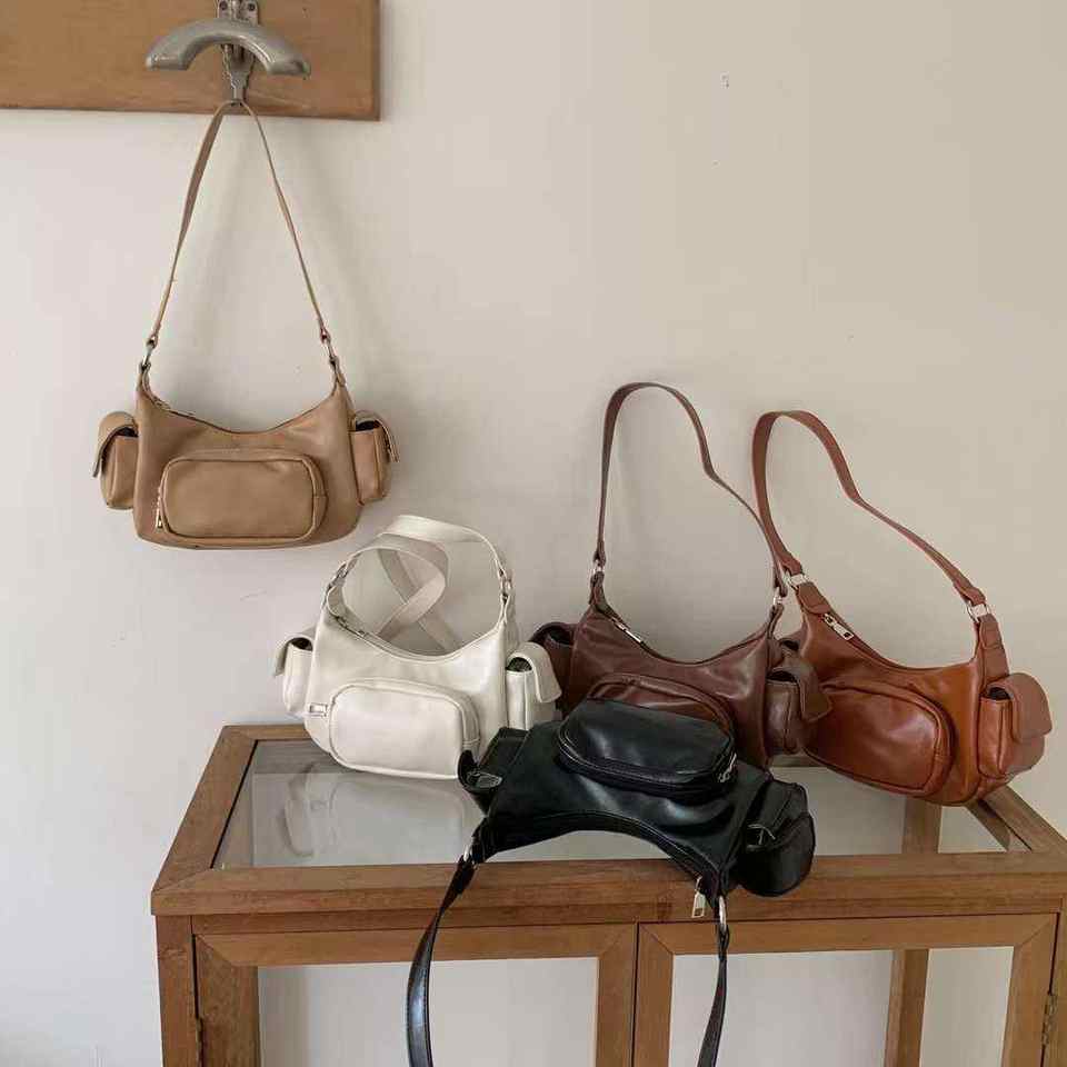 New PU leather Japanese style retro crescent crossbody bag casual daily shoulder bag