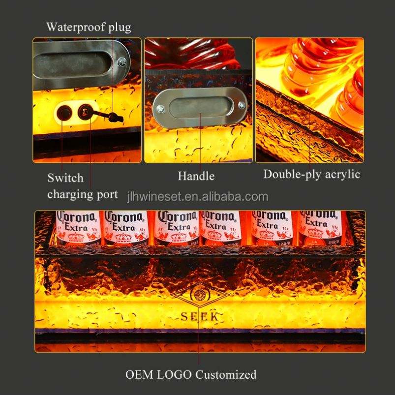 New Party Nightclub Double Ice Texture Plastic LED Beverage Tubs Wine Champagne Vodka Beer Acrylic Ice Bucket